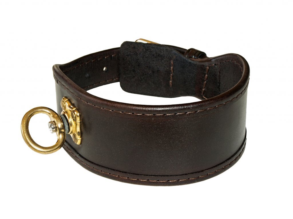 Farbiarsky obojok podšitý tenkou kožou s podloženou sponou, dlhý 65cm.