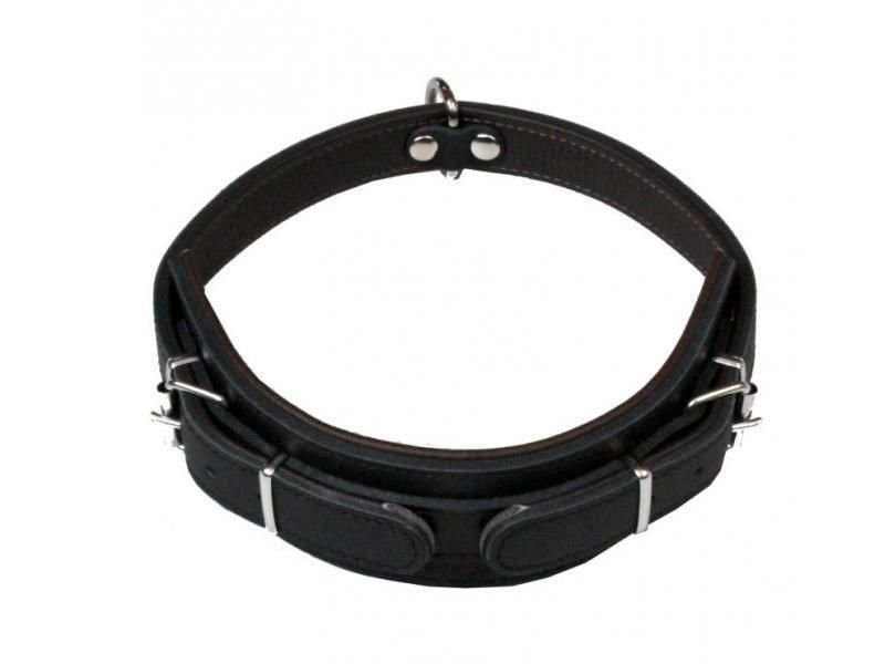Kožený obojok obrana bez ucha pre psa – dĺžka 6 cm x 65 cm, (pre obvod krku od 53 cm do 65 cm) na každej strane obojku sú 4 dierky po 2 cm, farba čierna Pevná hovädzinová koža výborné kvality a jej kvalitné spracovanie zaručuje obojku vysokú úžitkovosť. Možnosť obojstranného povolenie / utiahnutie obojku.