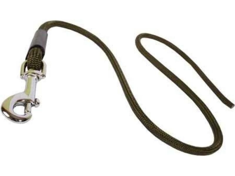 Vychádzkové vodítko syntetické lano 6 mm x 70 cm, vo farbe khaki. Strieborná spona, bez ucha.