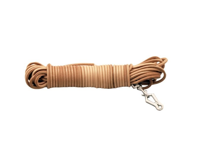 Farbiarska šnúra guľatá 4mm ukončená karabinou prírodnej farby, určená pre malé plemená. Cena je za 12m farbiarskej šnúry.