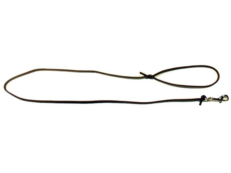 Kožené vodítko do ruky – 0,6 cm guľatá koža. Dĺžka cca 130cm, klasická karabina.