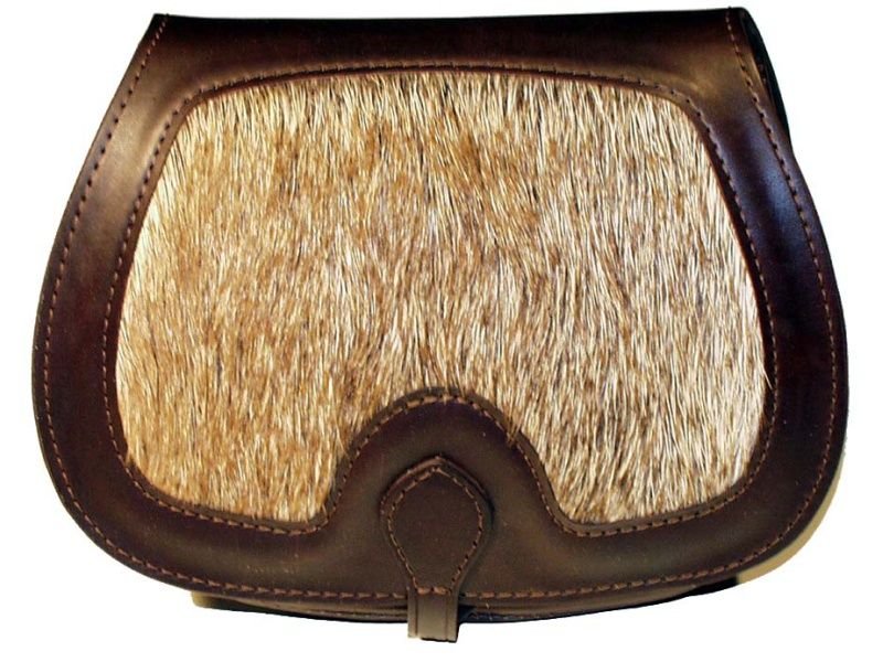 Kvalitná pevná odolná veľká kožená lovecká brašňa z hovädziny so srsťou diviaka.
