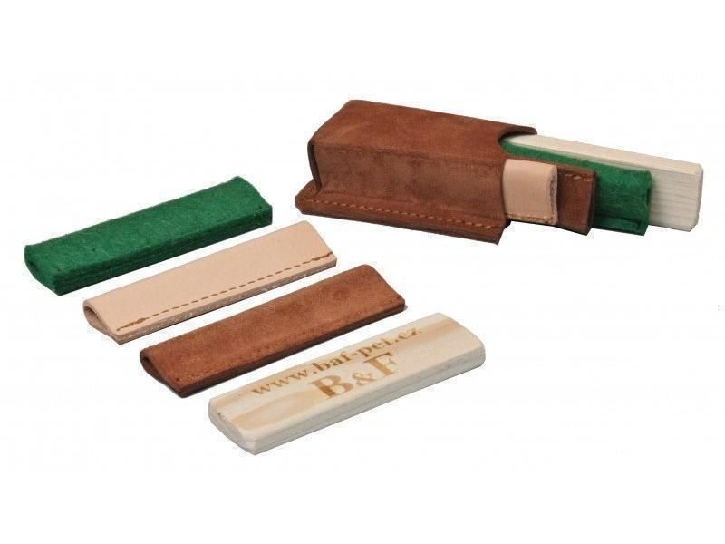 Kožené puzdro obsahuje: 2 x koža, 1 x drievko, 1 x filc